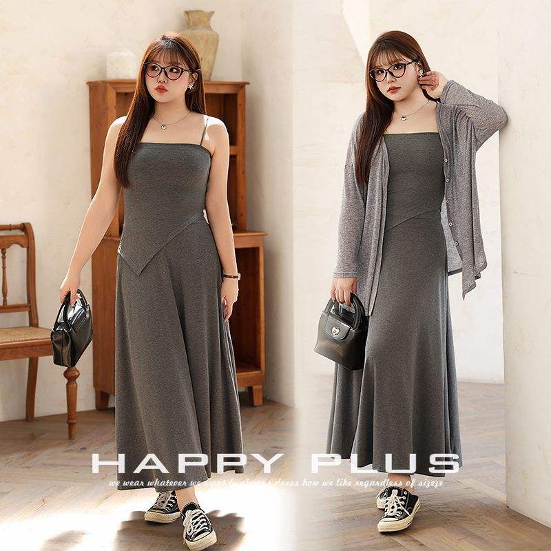 เสื้อคาร์ดิแกนสีเทาเฮเทอร์, เสื้อสายเดี่ยวสีเทา, กระโปรงมิดิสีเทาสี