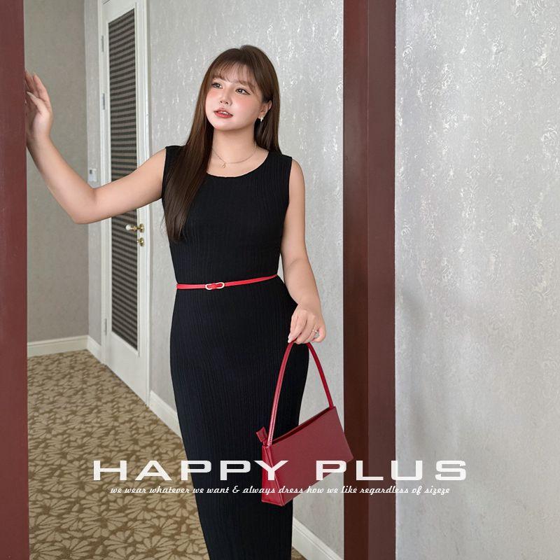 เดรสไหมพรมทรงเข้ารูป Happy Plus ไซส์ใหญ่ คอสูง ผ่าข้าง สีพื้น แฟชั่นสำหรับผู้หญิง ชุดเดรสฤดูใบไม้ร่วง