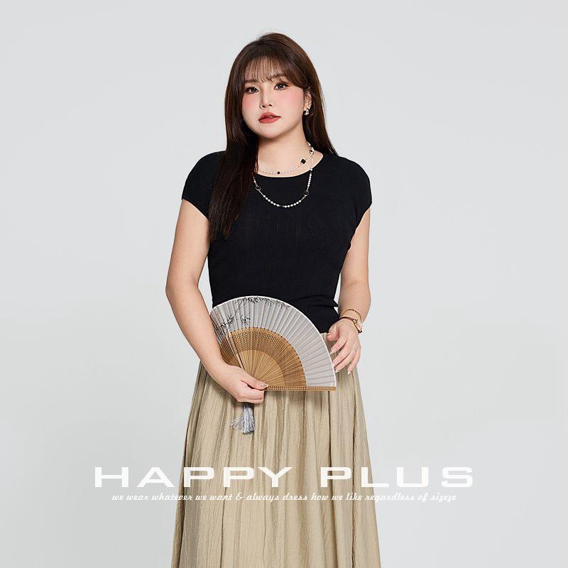Happy Plus Knitted Short Sleeve Top Apricot Plus Size Women's T-Shirt Elegant Commuting Style