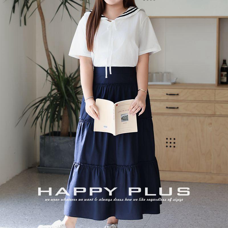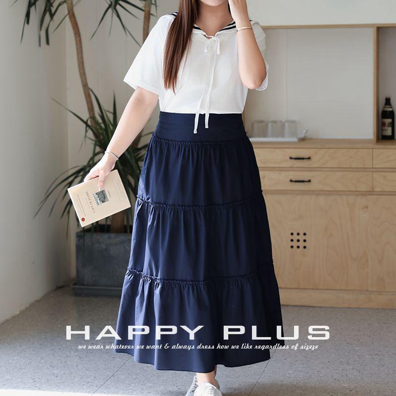 กระโปรงเอวสูงทรงเอไลน์เอวสูงสีน้ำเงินกรมท่ามีความสุขพับ N9151กระโปรงผู้หญิงขนาดใหญ่พิเศษ