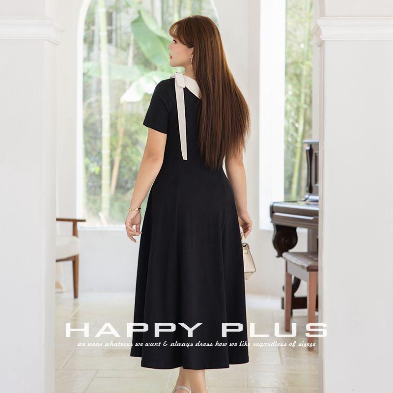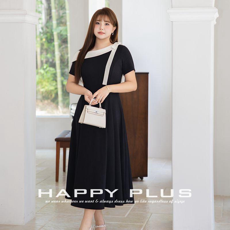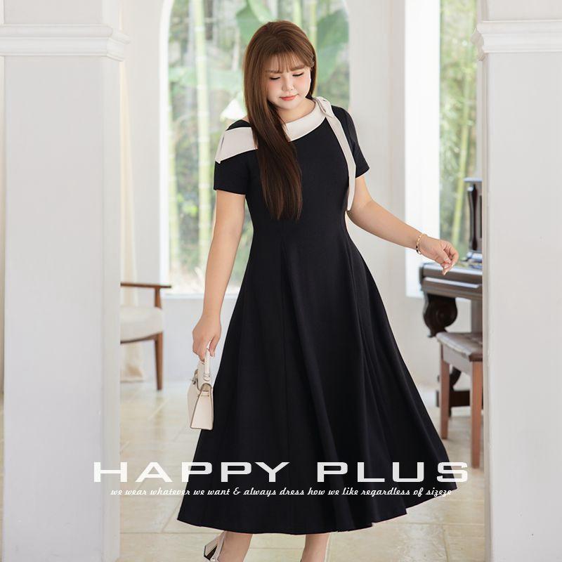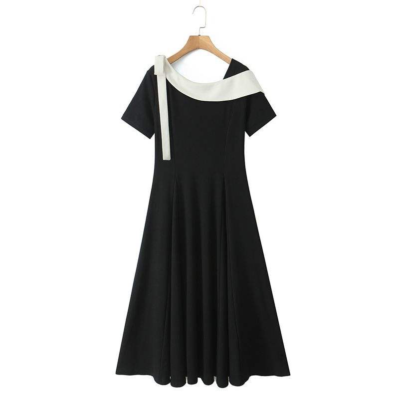 เดรสสีดำทรงเข้ารูปแบบเปิดไหล่ แต่งผ้าต่อสีพื้น ผ้าฝ้าย สำหรับผู้หญิง รุ่น N9266