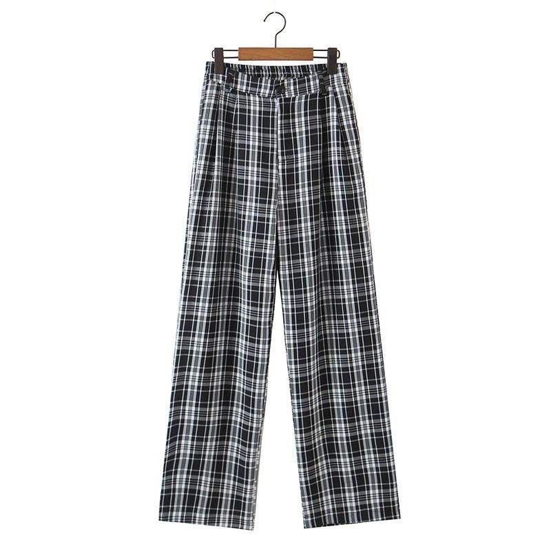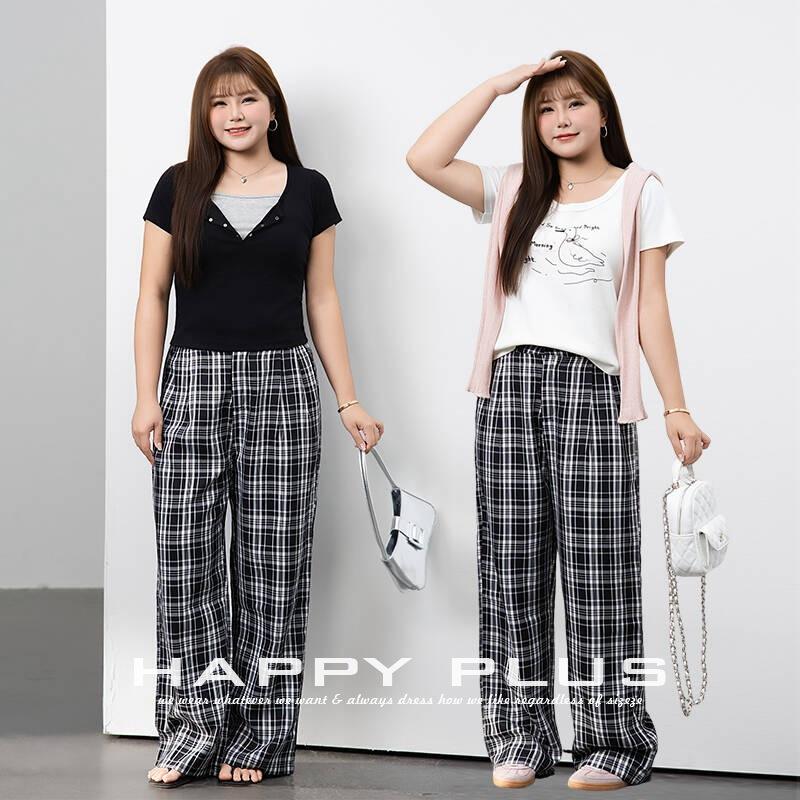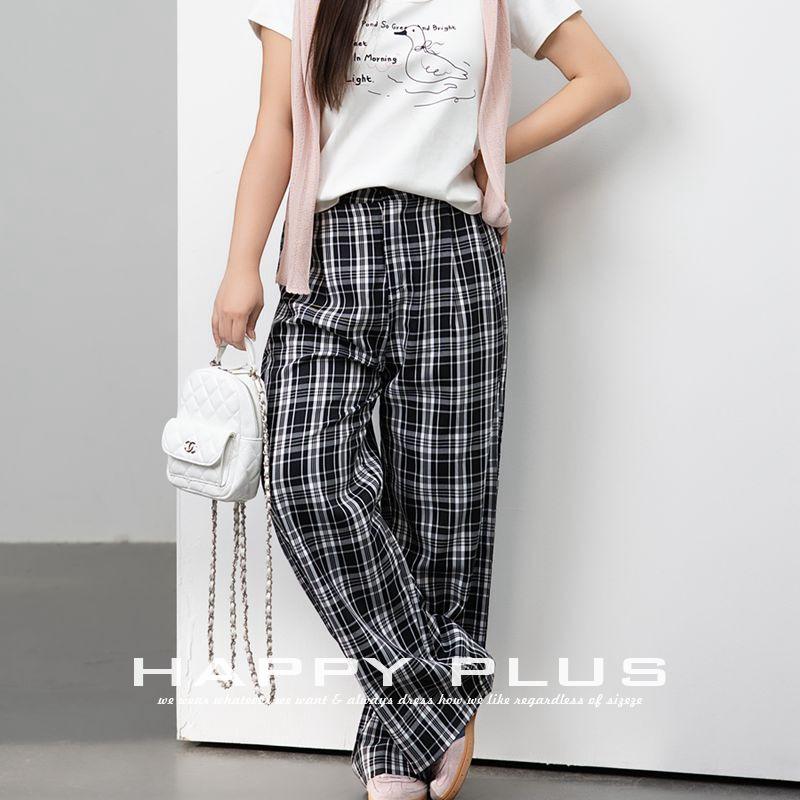 Hague กางเกงขาตรงเอวสูงลายสก๊อตไซส์พิเศษ, กางเกงเอวยางยืดกางเกงลำลองผู้หญิง N8444