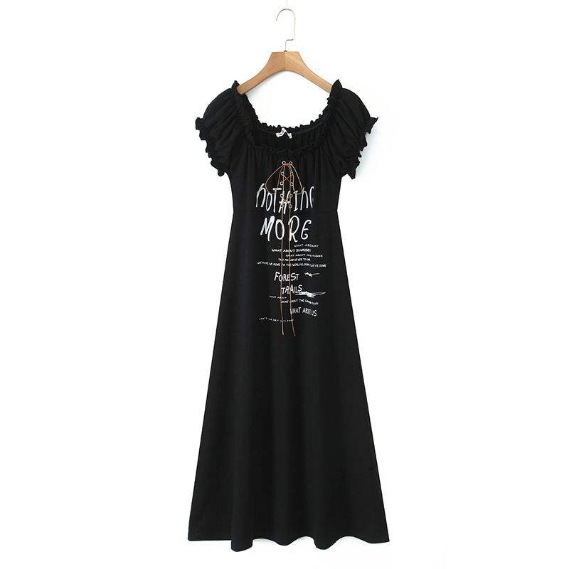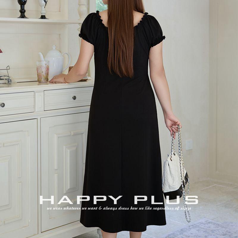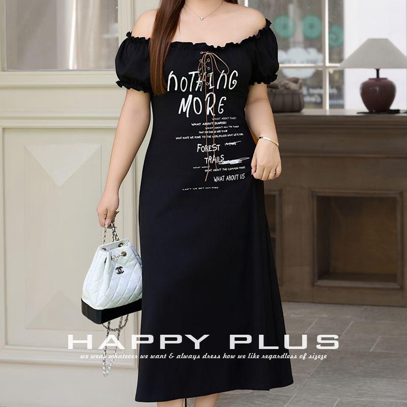 ชุดเดรสทรงเอผูกเอวพิมพ์ลายแฮปปี้ พลัสผ้าชีฟองสีดำ ชุดเดรสผู้หญิงไซส์ใหญ่
