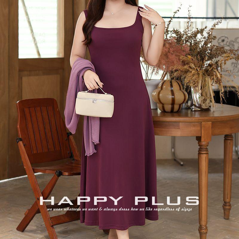 แฮปปี้ พลัสเดรสคอเหลี่ยมสีม่วง เดรสเข้ารูปเอวเข้ารูป เดรสผ้าเจอร์ซีย์สีพื้น ไซส์พลัส สำหรับผู้หญิง N8940