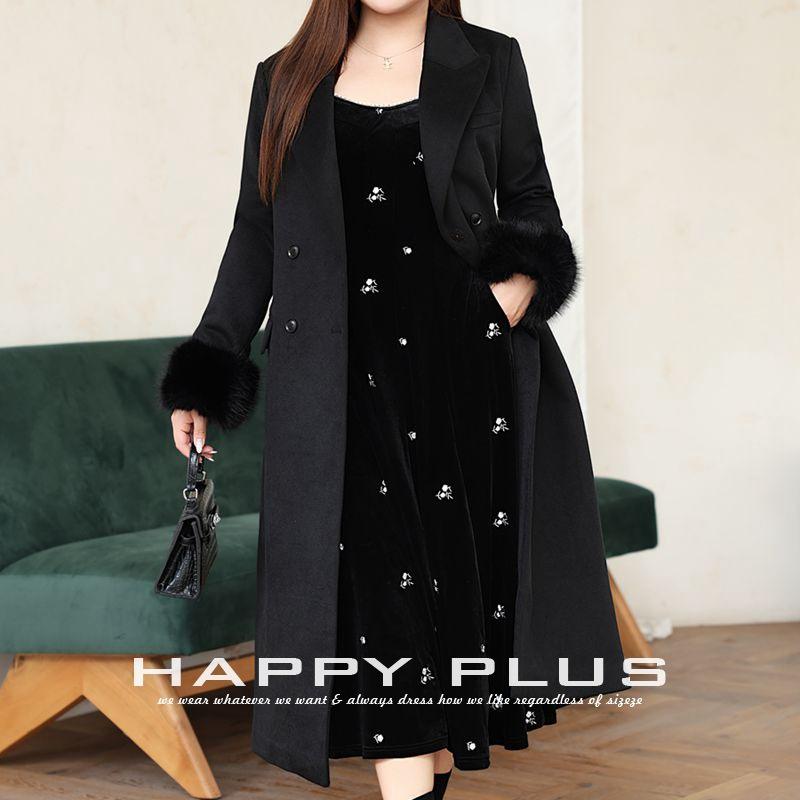ชุดเดรสกำมะหยี่แฮปปี้พลัส คอเหลี่ยม แขนยาว ทรงเข้ารูป ไซส์พลัส สำหรับผู้หญิง พร้อมงานปักมุก ลายดอกไม้ สีดำ รุ่น N9049