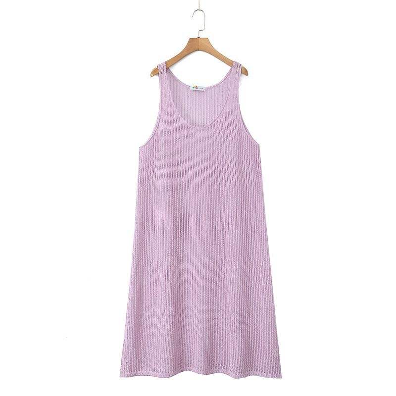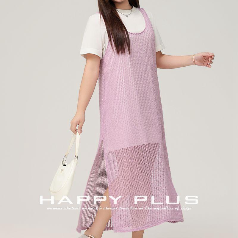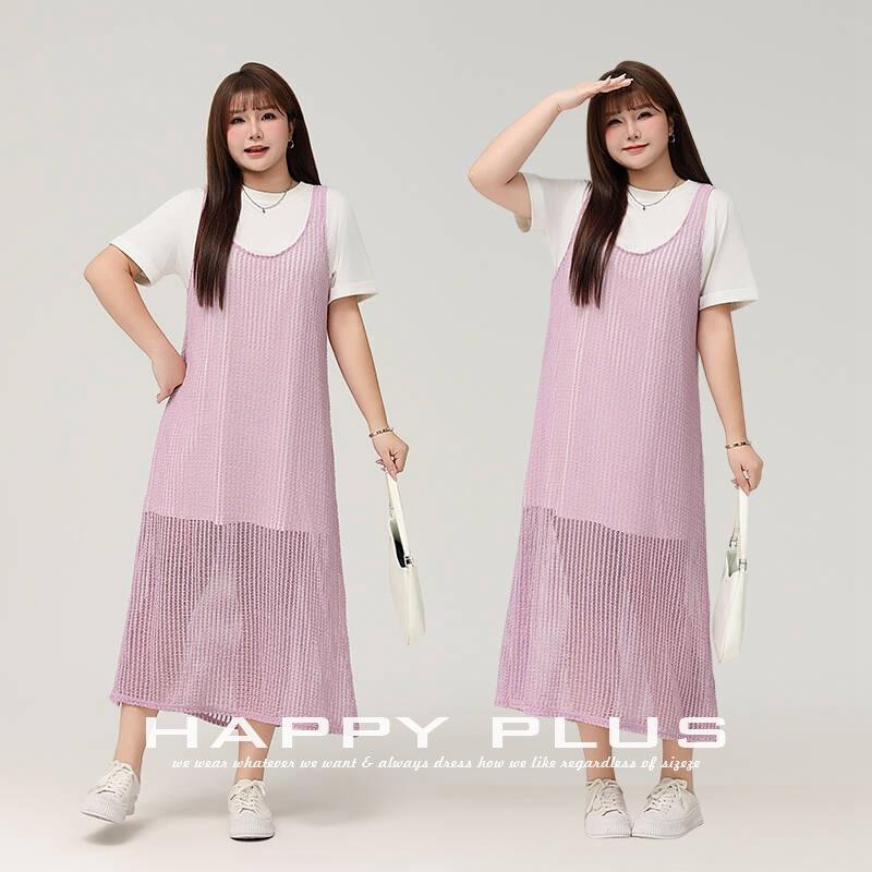 แฮปปี้ พลัส ไวท์ เสื้อกั๊กถักไหมพรมยาว คอกลม ทรงหลวม ลายฉลุ ชุดเดรสลำลองสำหรับผู้หญิง ไซส์พลัส N9142
