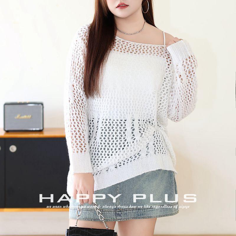 แฮปปี้ พลัส เสื้อคาร์ดิแกนถักแบบโปร่ง รุ่น N9003 สำหรับผู้หญิง ไซส์พลัส สวมทับลำลอง