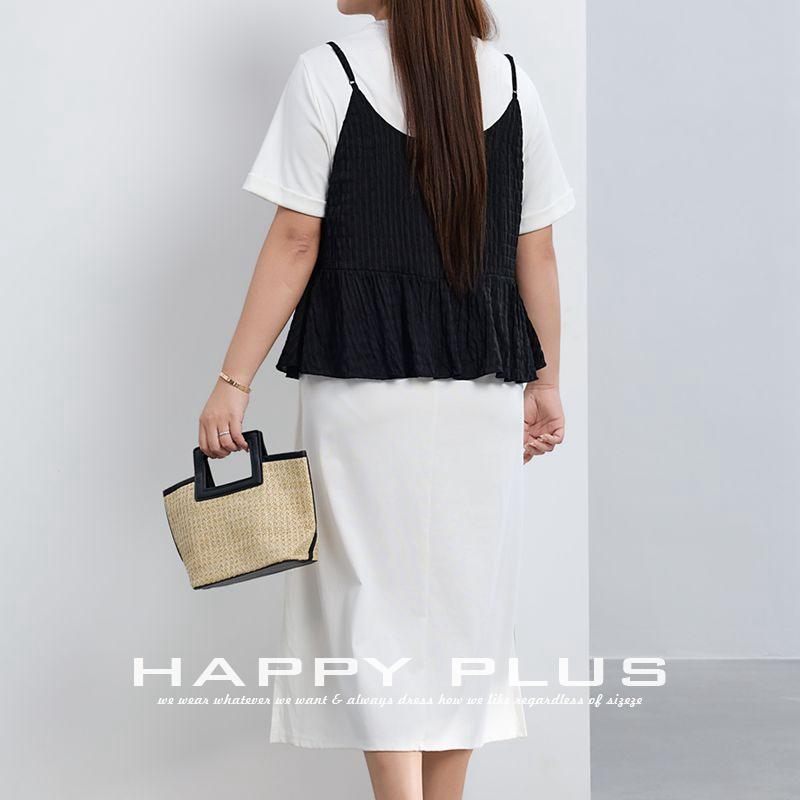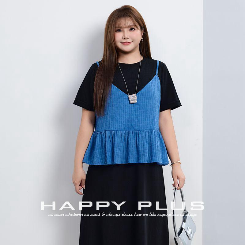 Happy PLUS เสื้อกั๊กลายสก็อตสีน้ำเงินของผู้หญิงเสื้อนอกลำลองมีระบายทรงหลวม N9236