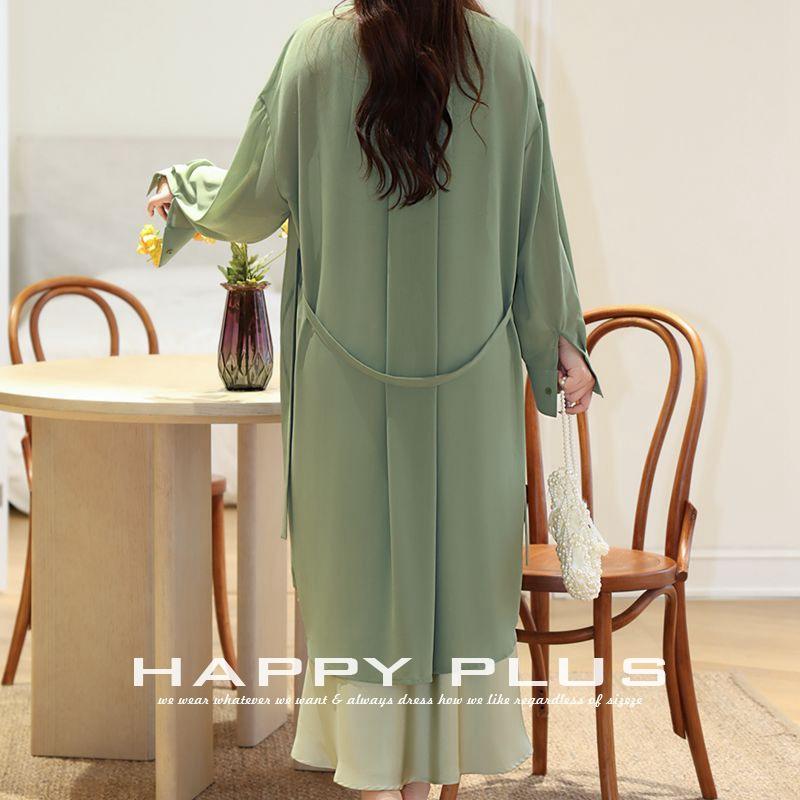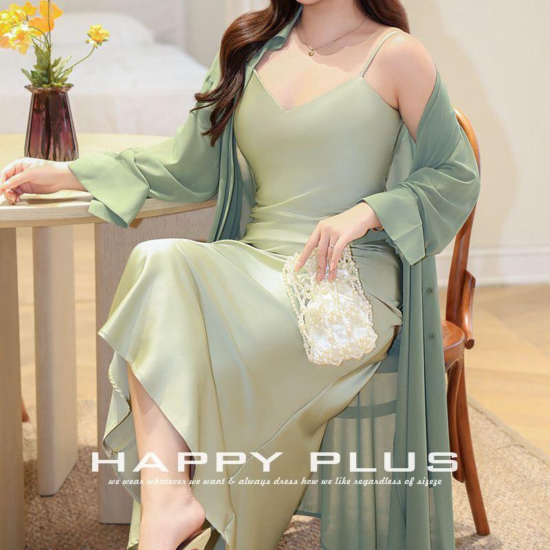แฮปปี้ พลัสชุดเดรสกระโปรงยาวผ้าชีฟองสีเขียวสำหรับผู้หญิง ระบายอากาศได้ดี สีพื้น ไซส์พลัส N8843