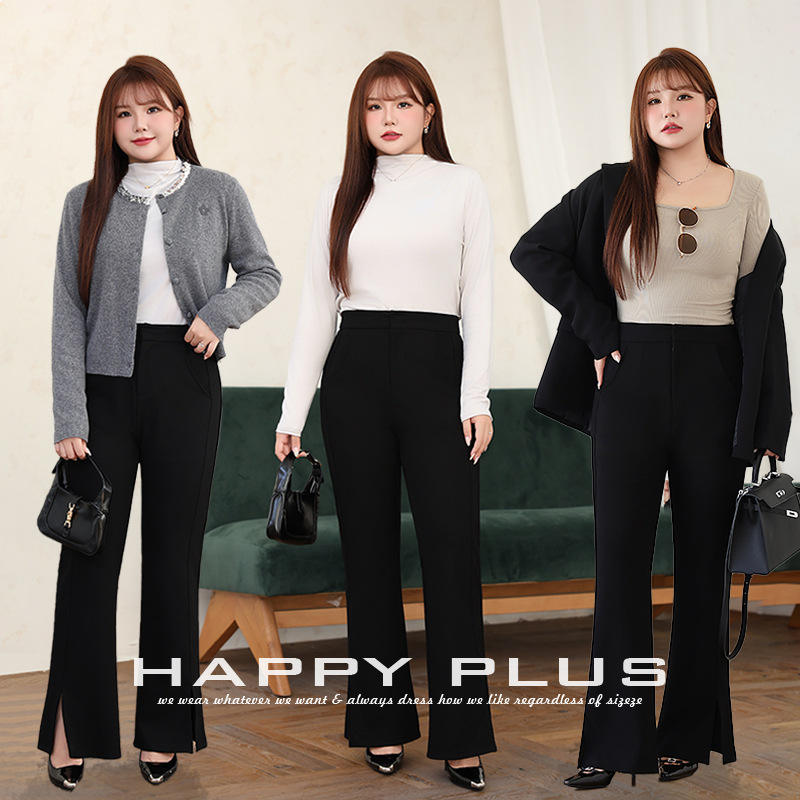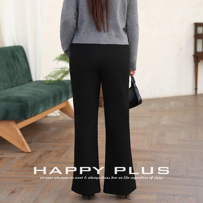 แฮปปี้ พลัสกางเกงขากว้างเอวสูงสำหรับผู้หญิง สีดำ ผ้าเครปไมโครอีลาสติก ป้องกันริ้วรอย พลัสไซส์ N8960