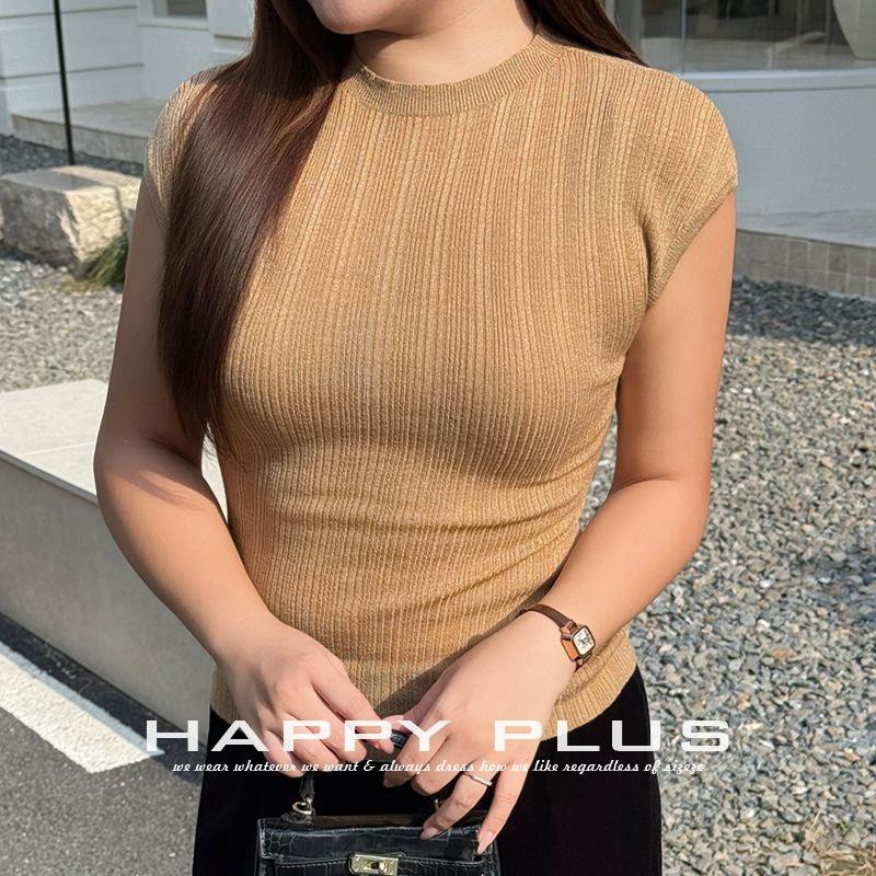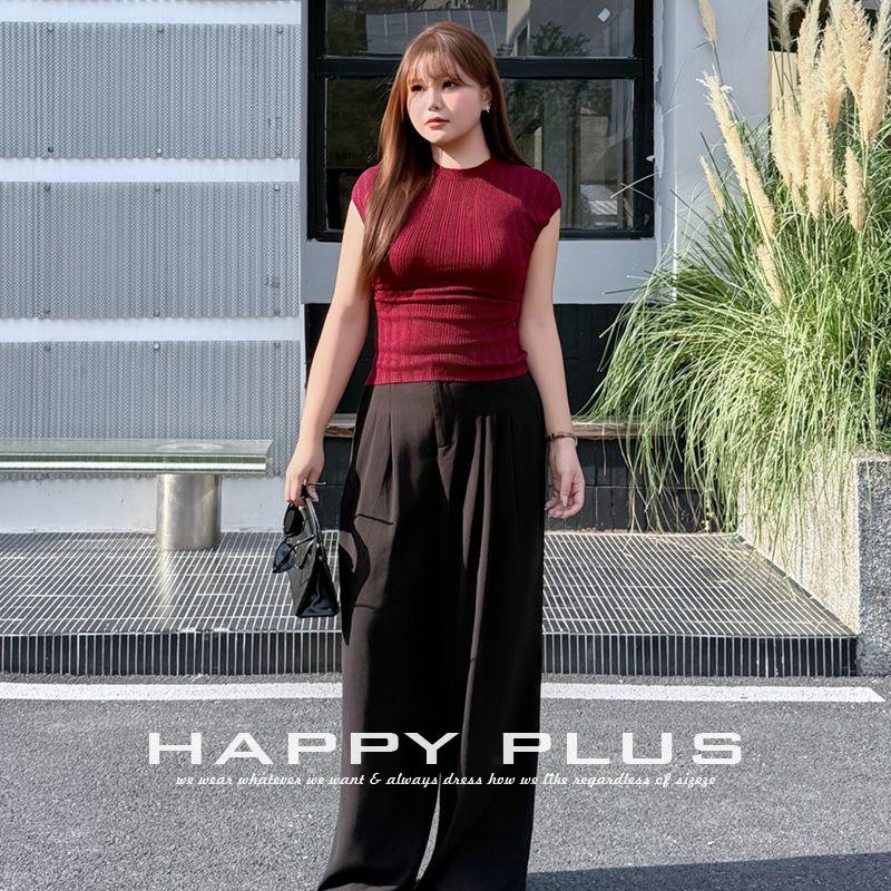 แฮปปี้ พลัสเสื้อถักผู้หญิง คอสูง ทรงเข้ารูป สีแดง สีพื้น โพลีเอสเตอร์ ความหนาปานกลาง พลัสไซส์