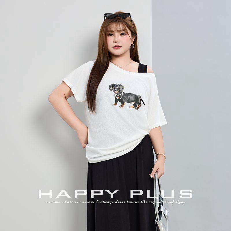 แฮปปี้ พลัสเสื้อยืดพิมพ์ลายไหล่หลวมสำหรับผู้หญิง N9176 เสื้อเจอร์ซีย์แขนสั้นลำลองระบายอากาศได้ดีลายสัตว์