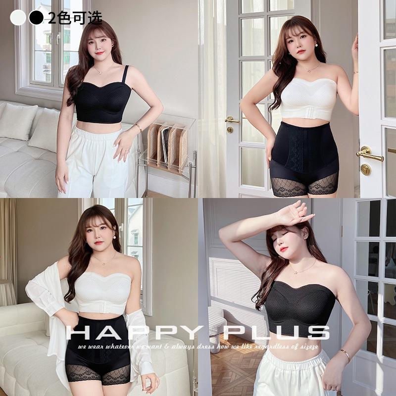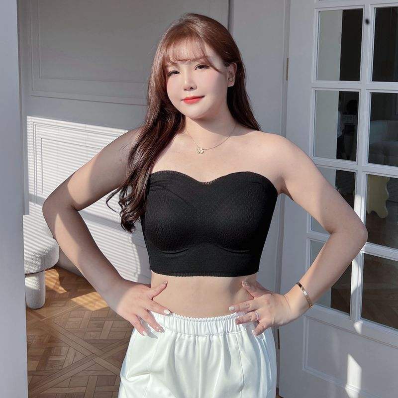 Happy Plus Women's Plus Size Bralette Mesh Fabric Black White Non Slip Strapless Off Shoulder Solid Color N8723
