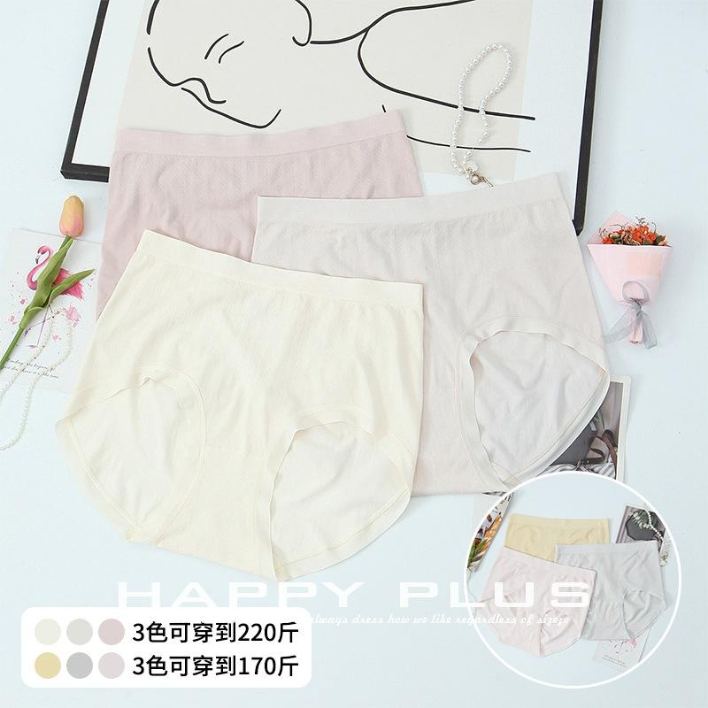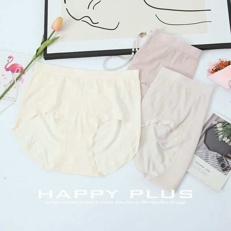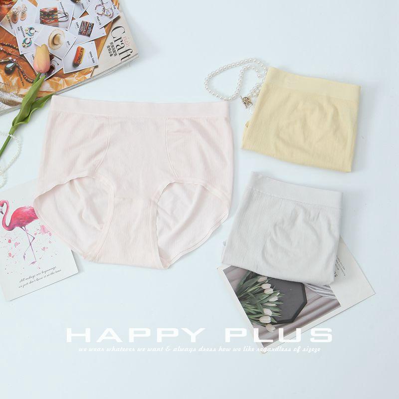 แฮปปี้ พลัสกางเกงชั้นในผ้าฝ้ายถักเอวสูงปานกลางสำหรับผู้หญิงไซส์ใหญ่ ไร้ตะเข็บ นุ่มสบาย ใส่ได้ทุกวัน