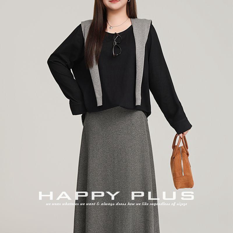 ชุดสามชิ้นสำหรับผู้หญิงแฮปปี้ พลัสสีทึบแต่งลูกไม้ถักนิตติ้งขนาดพลัสชุดลำลองฤดูใบไม้ผลิ N9102 1