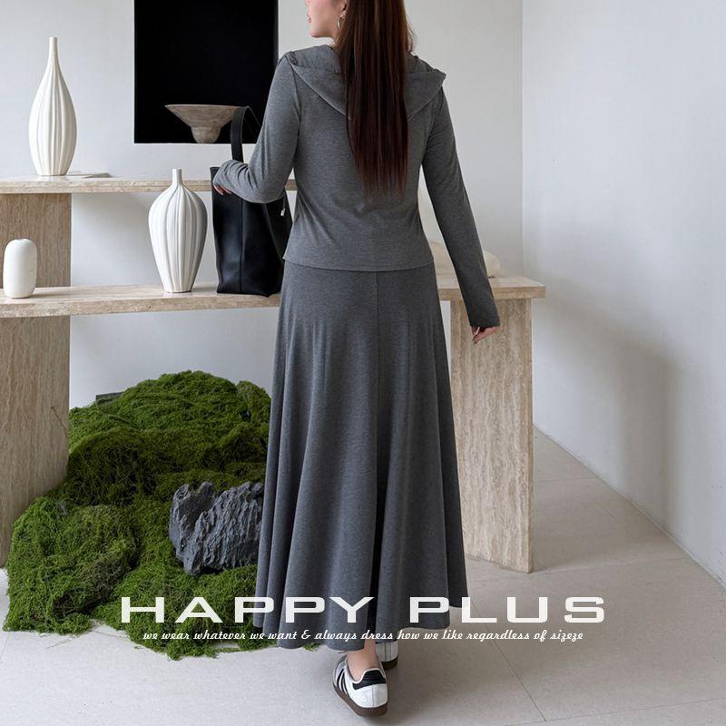 ชุดเซ็ตสองชิ้นสำหรับผู้หญิงแฮปปี้ พลัสสีดำสีเทาสีทึบผ้าถักโมดัลชุดลำลองมีฮู้ดขนาดพลัส N9490