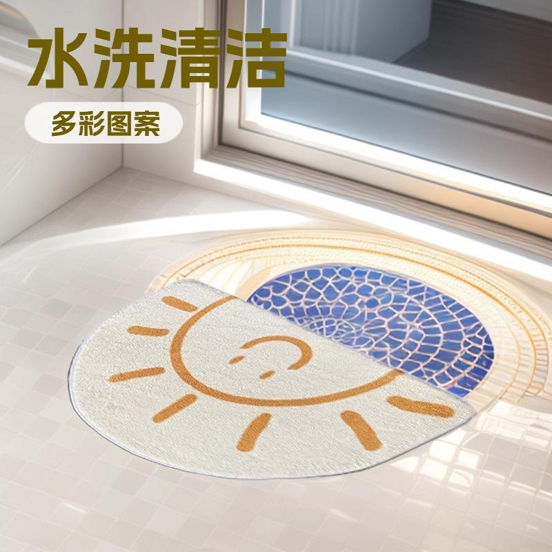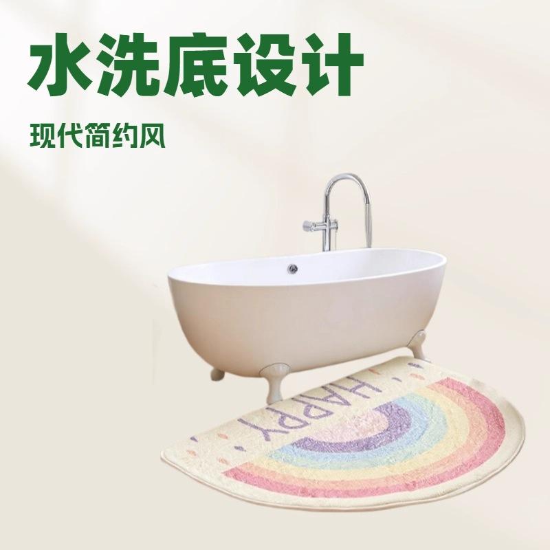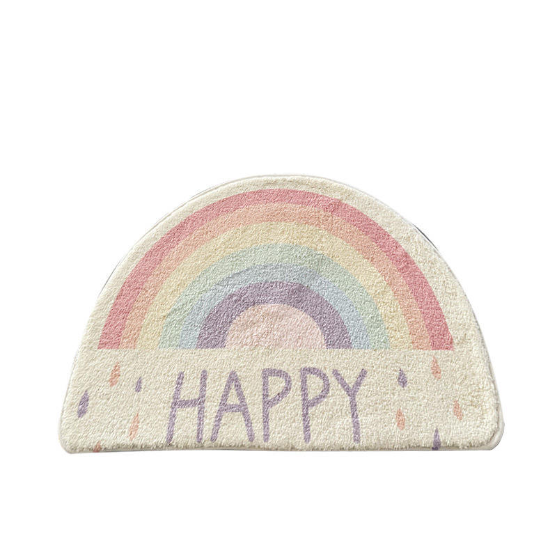 Happy Rainbow Half Circle Bath Mat Non-Slip Absorbent Polyester Door Mat For Bathroom Bedroom Living Room Home Use