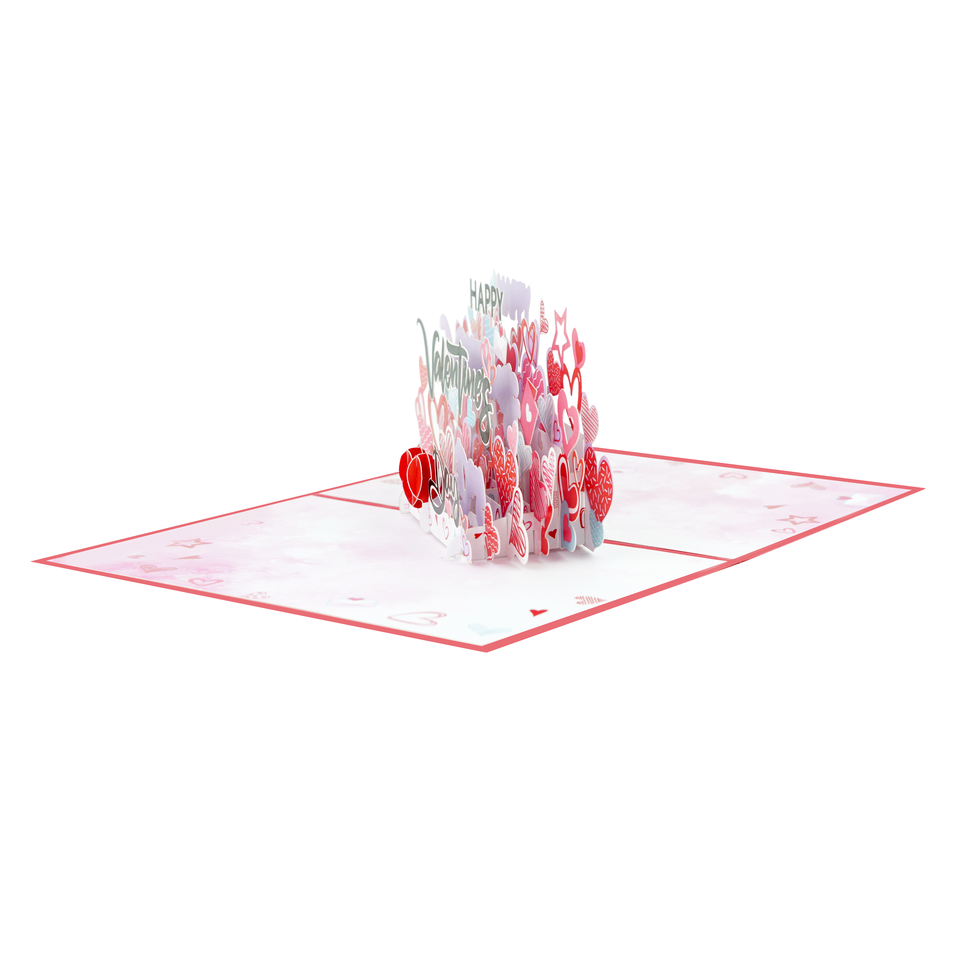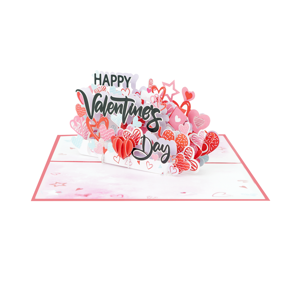 สุขสันต์วันเกิดวันวาเลนไทน์ตัวอักษรสีดำกับดอกไม้สีชมพูงานฝีมือศิลปะกระดาษการ์ดอวยพรสำหรับเป็นของขวัญแต่งงาน