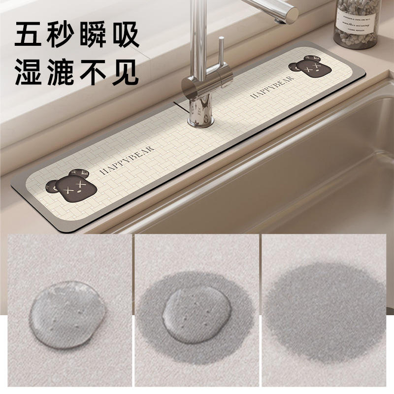 แผ่นรองอ่างล้างจาน Happybear รูปทรงสี่เหลี่ยมผืนผ้า ทำจาก PVC กันลื่น ซึมซับน้ำได้ สำหรับอ่างล้างหน้าในห้องน้ำ