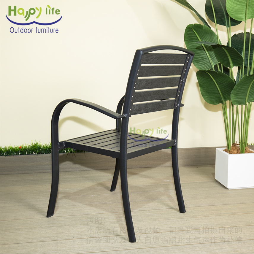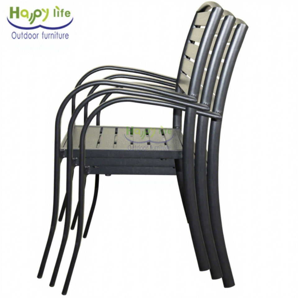 ร้านอาหารฝรั่งเศสสมัยใหม่ Happylife เก้าอี้อลูมิเนียม WPC แบบซ้อนได้สำหรับกลางแจ้ง ทนทานต่อรังสียูวี กันน้ำ เหมาะสำหรับครัว โรงงาน ลานบ้าน ร้านอาหาร
