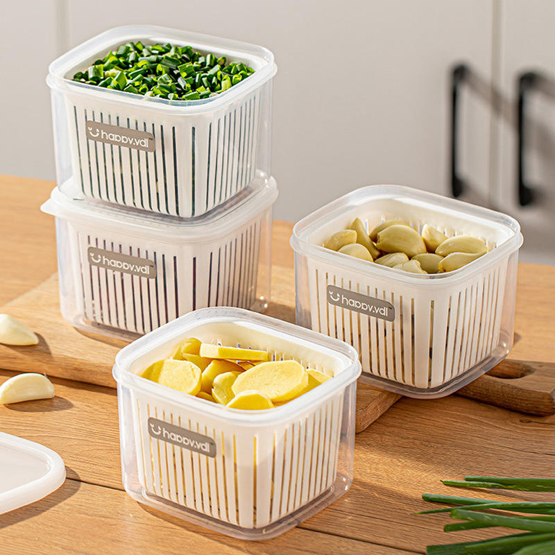กล่องเก็บอาหารแบบซ้อนได้ Happywal รูปทรงสี่เหลี่ยมผืนผ้า ฝาแบบหนีบ สำหรับเก็บหัวหอม ขิง กระเทียม และเครื่องปรุงรส
