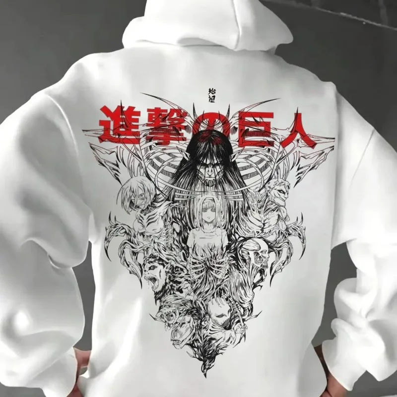 เสื้อมีฮู้ดขนาดพลัสไซส์พิมพ์ลายอนิเมะโจมตีใส่ได้ทั้งชายและหญิงสไตล์ฮาราจูกุ