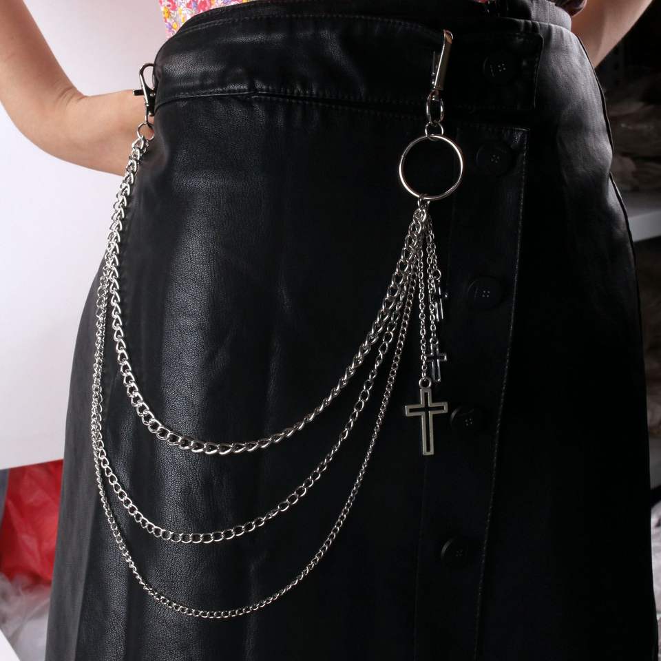 สร้อยคาดเอวแบบจี้กางเขนสไตล์ฮาราจูกุ โลหะผสมสังกะสี สองชั้น แฟชั่นลำลองสำหรับทุกเพศ