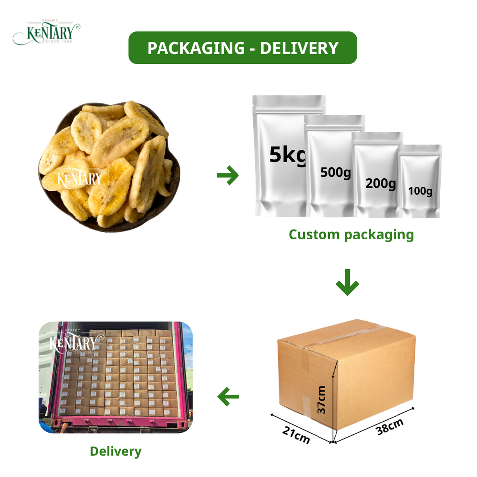 กล้วยอบแห้งแบบสุญญากาศเนื้อแข็งรสหวานสำหรับการแปรรูปทอดในถุงขายปลีกหรือกล่องกระดาษสำหรับบริการอาหาร