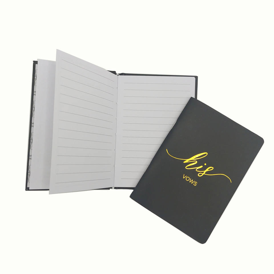 ปกแข็งทองฟอยล์โลโก้สาบานหนังสือคำปฏิญาณของเขาและเธอสำหรับงานแต่งงานที่มีขอบทอง