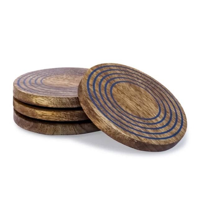 Hardware Ringed Wooden Coasters Natural Wood Grain Tableware Wooden Coasters for Drinks Round Ringed Design walnut coasters