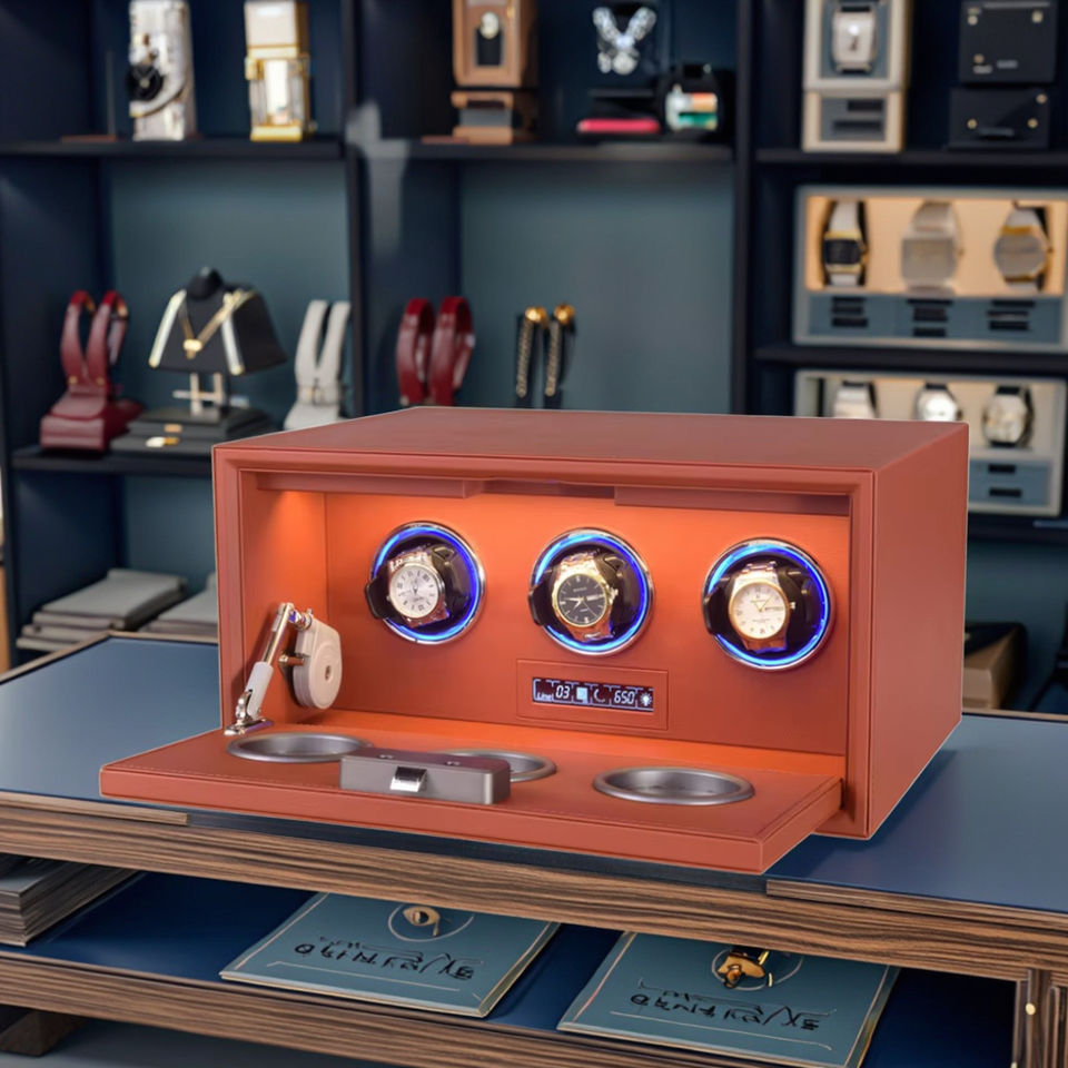 เครื่องหมุนนาฬิกาแบบอัตโนมัติหรูหรารุ่นฮาร์ดแวร์เกรดสูงมีตะคอร์ดด้านบนแบบเงียบป้องกันแม่เหล็ก