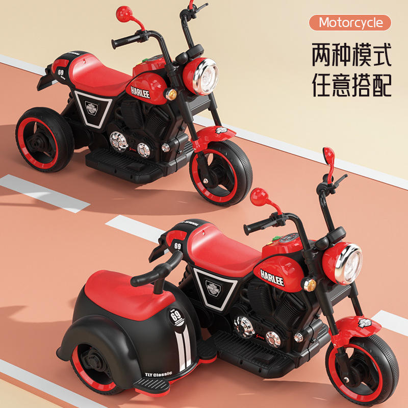 มอเตอร์ไซค์ไฟฟ้าฮาร์ลีสำหรับเด็ก ขับขี่ได้ 3 ล้อ ชาร์จไฟได้ พร้อมรถพ่วงข้าง สำหรับเด็กชายและเด็กหญิง อายุ 1-6 ปี