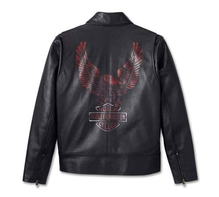 เสื้อแจ็กเก็ตหนังผู้ชายลายนกอินทรี