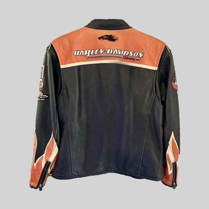 แจ็คเก็ตหนังนกอินทรีกรีดร้องสีส้มฮาร์เลย์เดวิดสัน