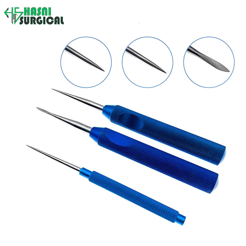 ชุดเครื่องมือผ่าตัด Hasni Surgical Skin Breaker แบบตรงและโค้ง ปลายแหลม ทำจากสแตนเลสสตีล ใช้งานด้วยมือ ได้รับการรับรองมาตรฐาน CE ระดับ Class I จำนวน 3 ชิ้น