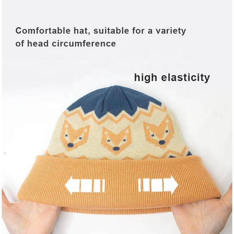 หมวกบีนนี่ถักไหมพรมลายแจ็คการ์ดให้ความอบอุ่น