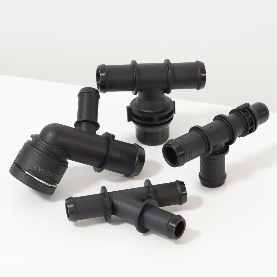 ข้อต่อแบบฉีดขึ้นรูปสำหรับยานยนต์ Hatch OEM/ODM แบบกำหนดเองได้ พร้อมแบบร่าง 2 มิติ/3 มิติ วัสดุ PA6/PA66/PA12 (ขนาด 1/8" 1/4" 1/2") - ซานตง