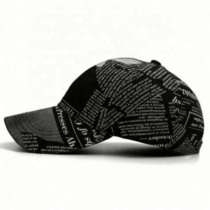 หมวกแก๊ปแฟชั่นสไตล์เรโทรลายหนังสือพิมพ์สำหรับผู้ชายและผู้หญิง ฤดูใบไม้ผลิ ฤดูร้อน หมวกเบสบอลสไตล์เกาหลี หมวกกันแดดสำหรับเล่นกีฬากลางแจ้ง