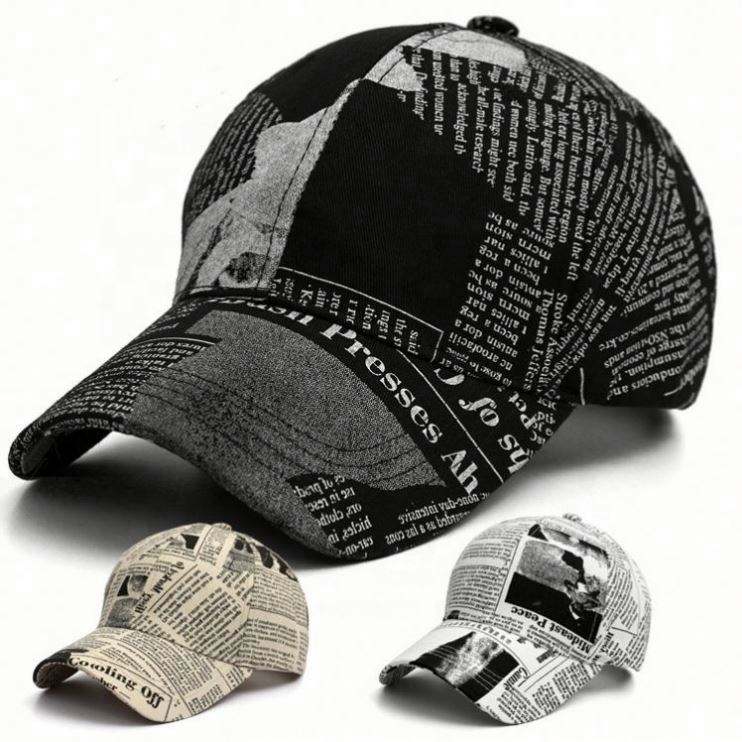 หมวกแก๊ปแฟชั่นสไตล์เรโทรลายหนังสือพิมพ์สำหรับผู้ชายและผู้หญิง ฤดูใบไม้ผลิ ฤดูร้อน หมวกเบสบอลสไตล์เกาหลี หมวกกันแดดสำหรับเล่นกีฬากลางแจ้ง