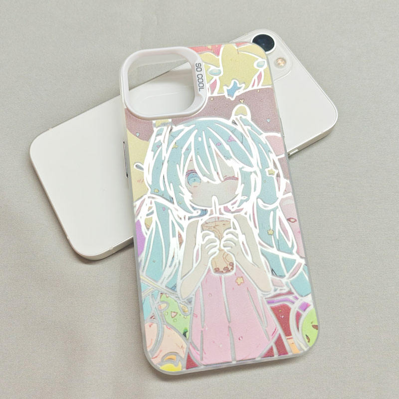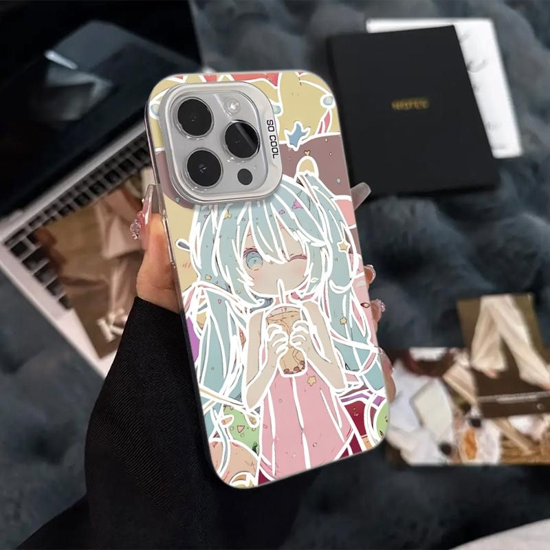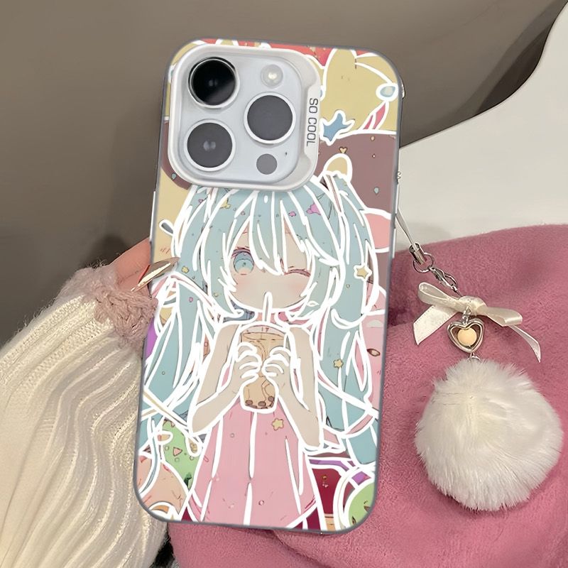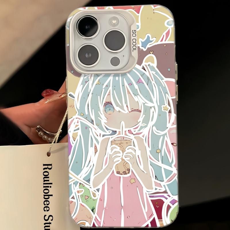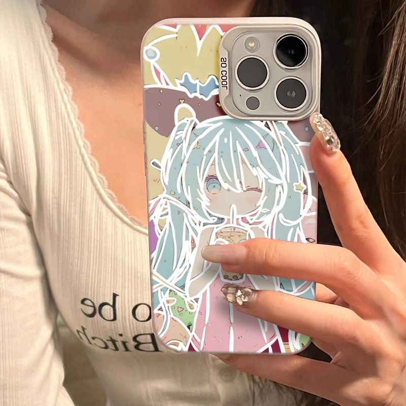 Hatsune ดื่มชานมเหมาะสำหรับ Apple 15PLUS เคสโทรศัพท์มือถือ iPhone12promax ป้องกันการตก14แฟน13คนน่ารัก