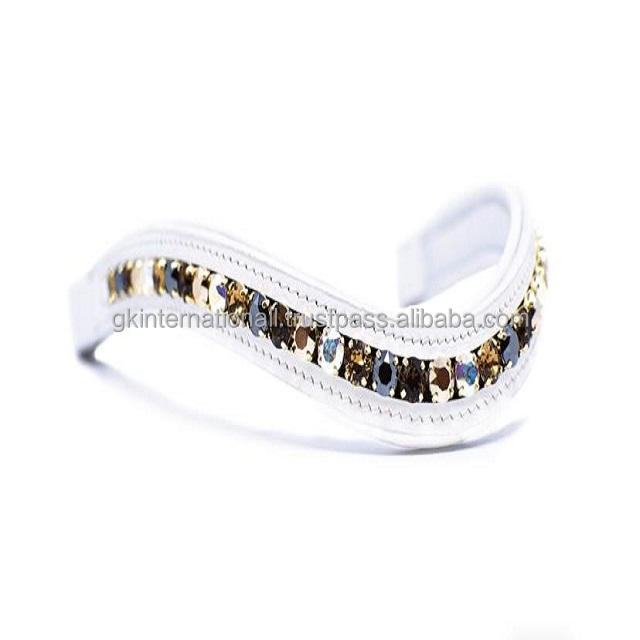 สายหนังรูปควายสีน้ำตาล havana แผ่นหนังรูปม้าขอบคิ้วช่องเปล่าพร้อมโซ่คริสตัลประกาย