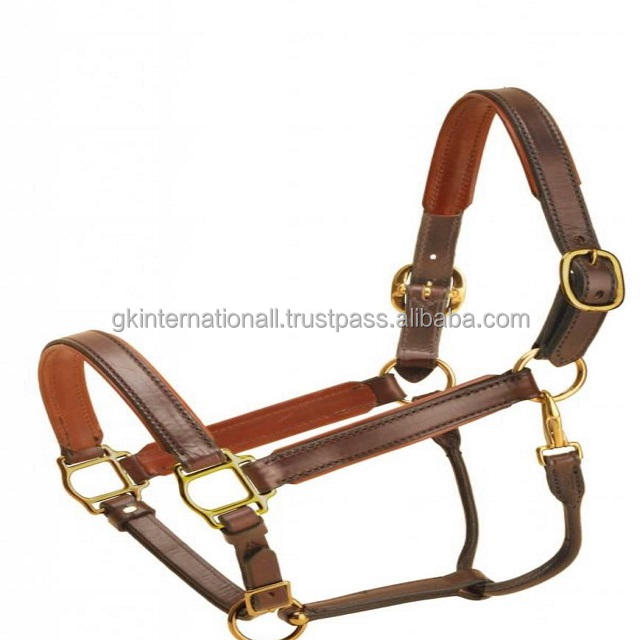 สายจูงม้าหนังหนาสีน้ำตาลฮาวานา พร้อมการเย็บที่ทนทานและบุนวมอย่างดี ฮาร์ดแวร์ทองเหลืองปรับได้สำหรับงานหนัก