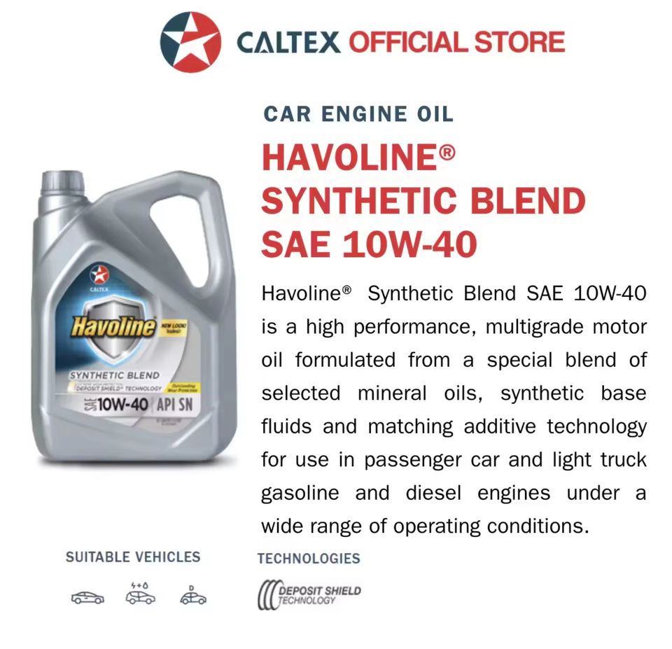 Havoline SAE 10W-40 SN น้ำมันเครื่องสังเคราะห์ผสมโดย caltex 4L พลาสติก (14กก.) ประสิทธิภาพสูงสำหรับรถยนต์การทำงานที่ราบรื่น