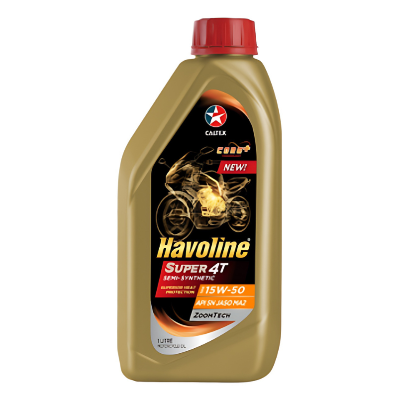 Havoline ซุปเปอร์4T น้ำมันเครื่องกึ่งสังเคราะห์ SAE 15W-50, SN, พลาสติก11กก., caltex, ประสิทธิภาพสูง, 1L, รถจักรยานยนต์, เครื่องยนต์