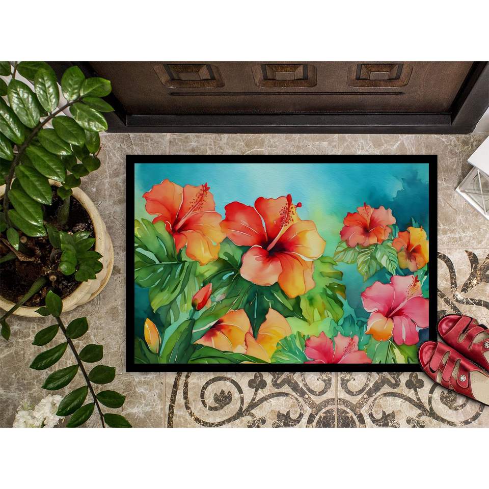 พรมเช็ดเท้าสีน้ำ Hawaii Hawaiian Hawiscus พรมเช็ดเท้ากันลื่นขนาดต่ำ24ชม. X 36W พรมหน้าประตูในร่มกลางแจ้งสำหรับทางเข้า