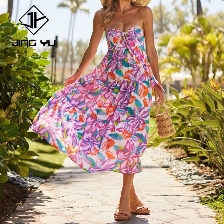 ชุดเดรสฮาวายแบบแม็กซี่ พิมพ์ลายดิจิทัลตามสั่ง ชุดเดรสชายหาด ผ้าเรยอนคุณภาพดีที่สุด 100% ชุดลำลองฤดูร้อนสำหรับผู้หญิง