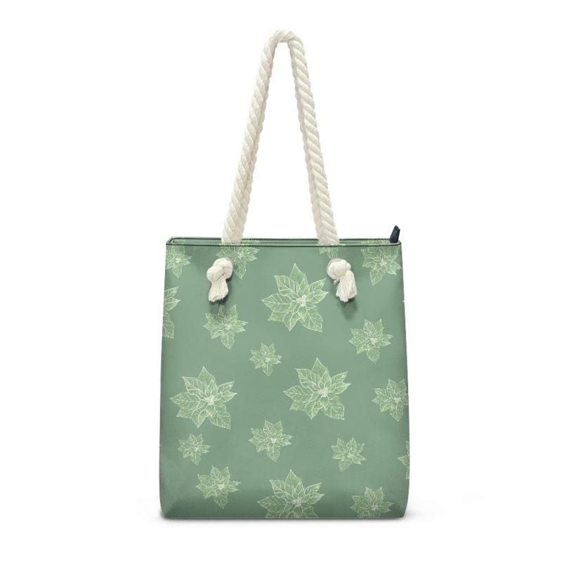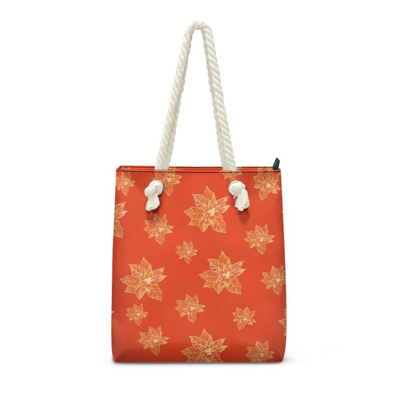 กระเป๋าสะพายข้างมีเชือกสำหรับผู้หญิงกระเป๋าโท้ทผู้หญิงทำจาก PU ลาย Poinsettias สไตล์ฮาวาย