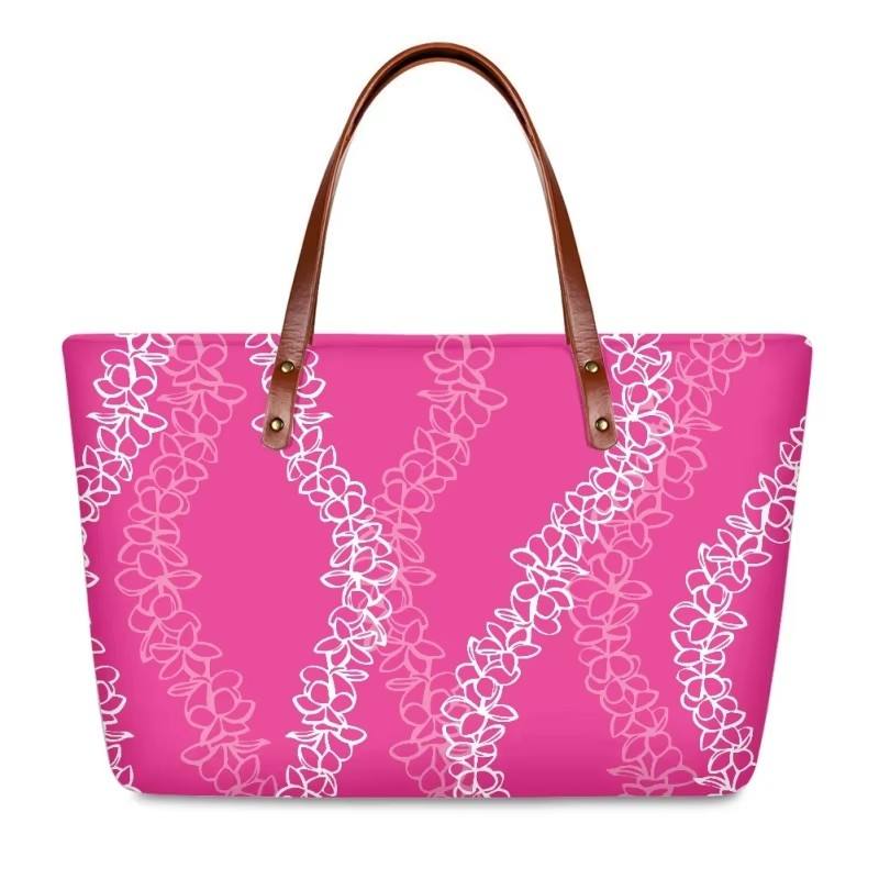 กระเป๋าถือโพลีเอสเตอร์ลาย Hawaiian puakenikeni กระเป๋ามีสไตล์สำหรับสาววิทยาลัย