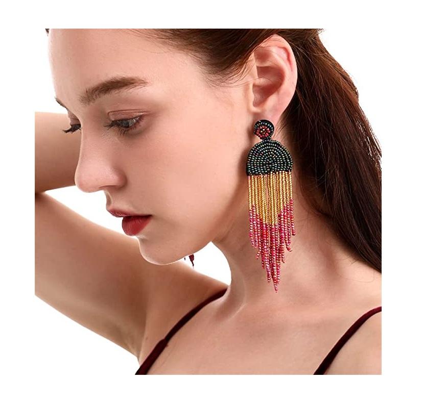 เครื่องประดับสไตล์ฮาวายทำด้วยมือต่างหูลูกปัดแบบโบฮีเมียนต่างหูมีพู่ห้อยสำหรับงานปาร์ตี้ต่างหูห้อยตุ้งติ้งของขวัญ