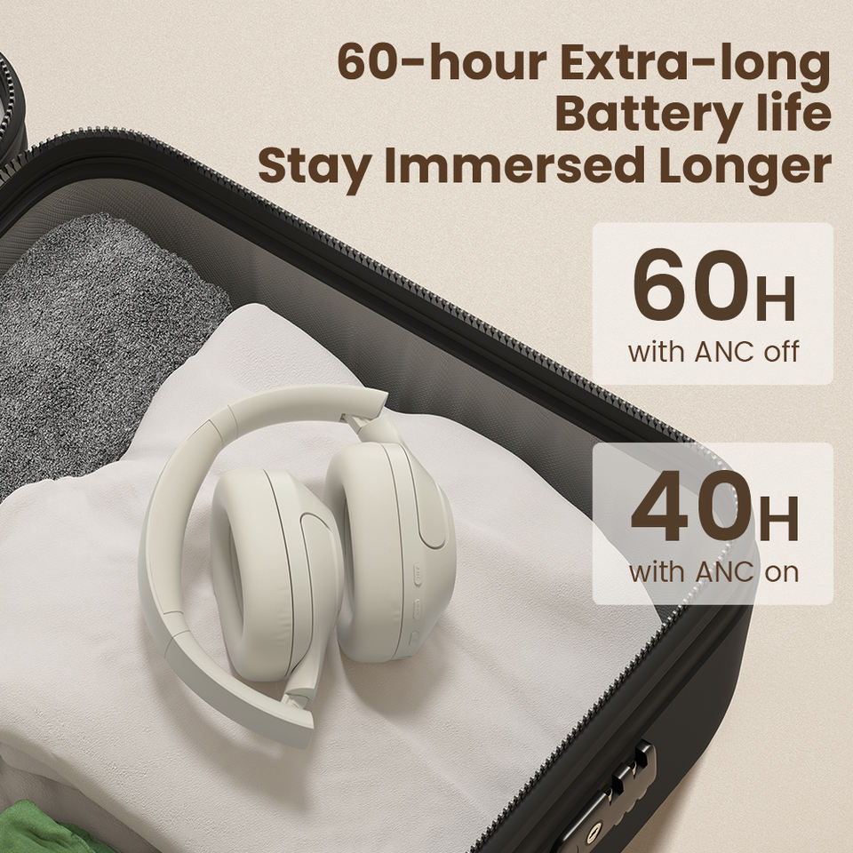 Headphone batterylife:Approx. 60 hour ANC off, approx. 40 hour ANC on